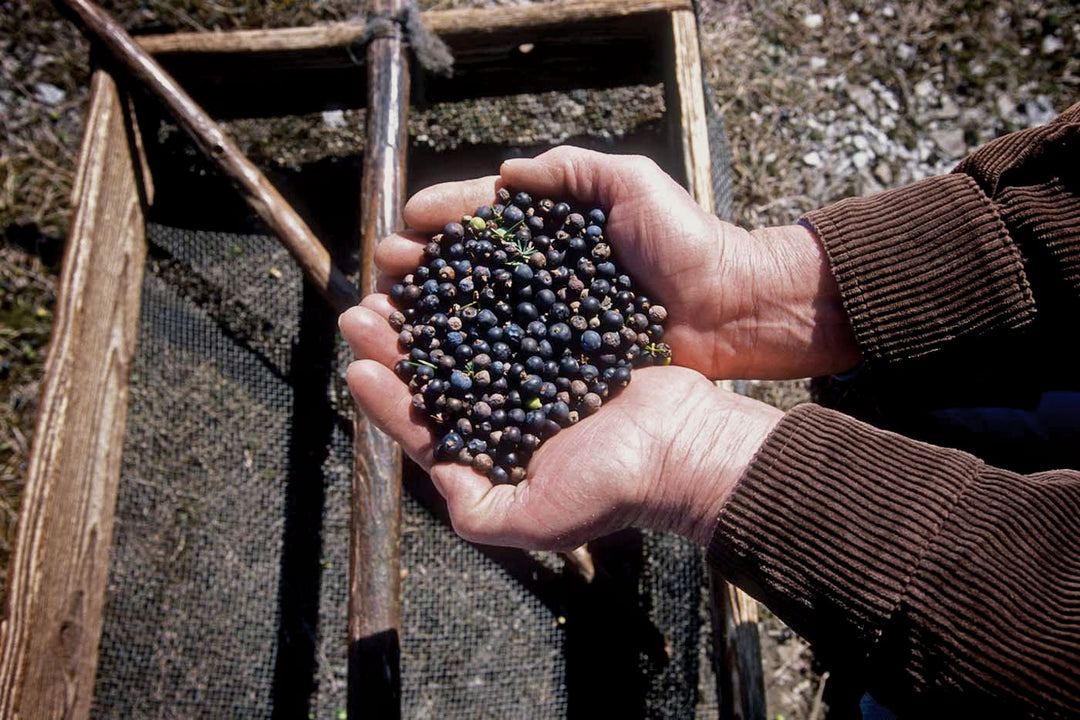 Dried juniper berries, fresh cracked pepper and fresh rosemary.