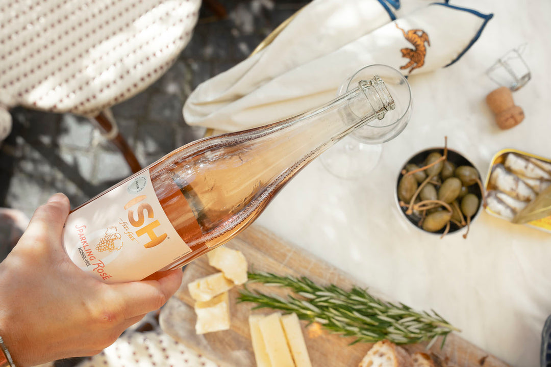 ISH Sparkling Rosé er en prisvindende alkoholfri mousserende Rosé. Lavet på en base af Merlot og Pinot Noir druer som vi nænsomt dealkoholiserer ved lav temperatur for at bevare druernes unikke karakter, så vi kan levere den mest autentiske alkoholfri vinoplevelse.