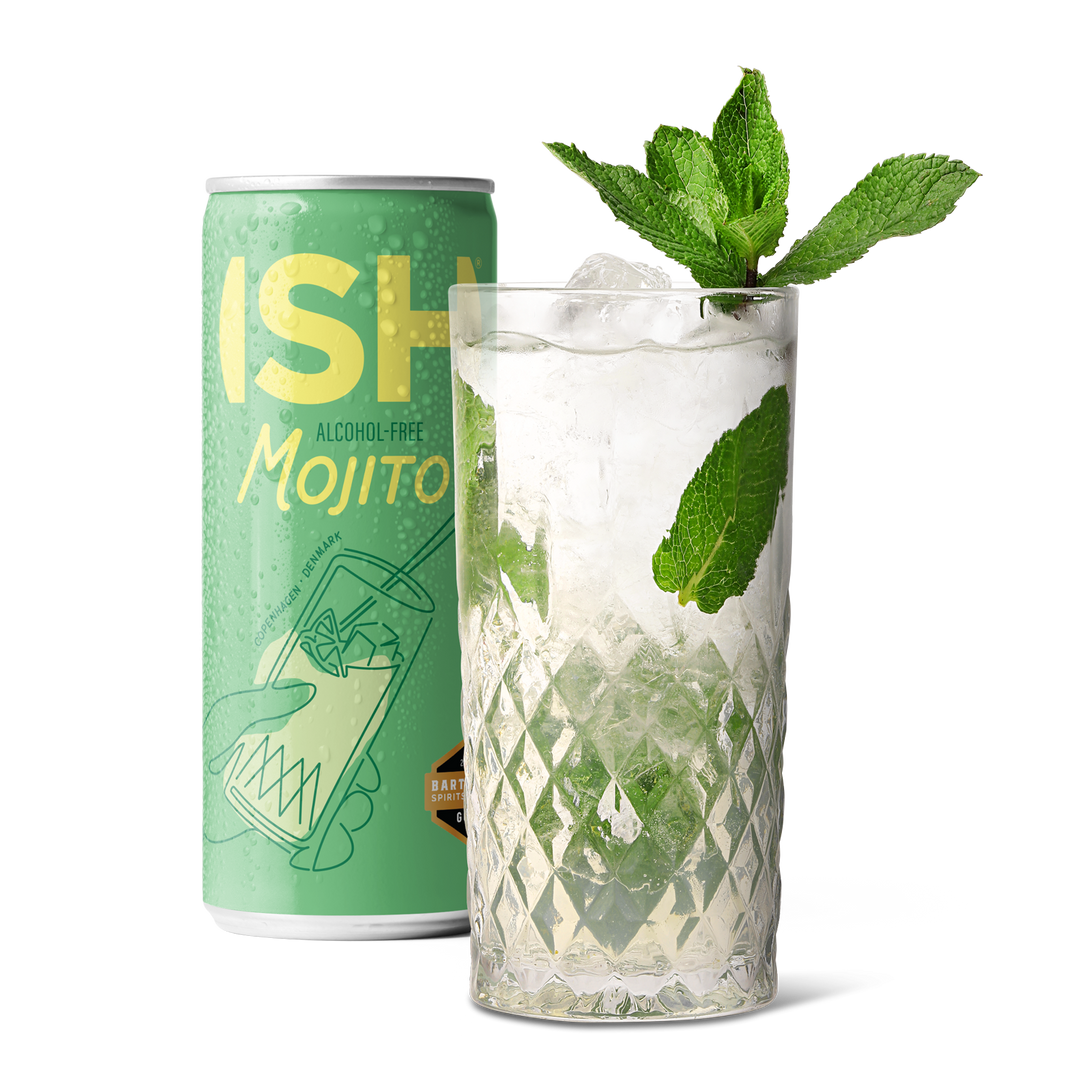 ISH Mojito kan nydes direkte fra den afkølede dåse eller pyntes i et highball glass med frisk lime og mynte. Vil du gerne tilføje et lille buzz? Så kan du give din ISH Mojito et lille dash almindelig hvid Rom – så får du en mindful cocktail med væsentlig færre procenter end en traditionel Mojito.
